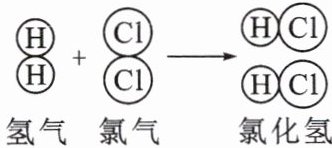 14. (教材第61页图片素材改编)如图所示是氢气$(H_2)$和氯气$(Cl_2)$反应的示意图,试回答: