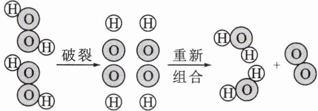 17. 实验室常用过氧化氢$(H_2O_2)$催化分解法制取氧气$(O_2)。$如图是过氧化氢分子分解的微观示意图,请结合图中信息写出你能获得的化学知识。