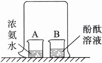 3. (2023 年内江市)如图所示,烧杯 A 中盛有 10mL 浓氨水;烧杯 B 中盛有 20mL 蒸馏水,并滴入 2~3 滴酚酞试液,得到无色溶液。几分钟后,观察到烧杯 B 中的溶液变红,其主要原因的是: