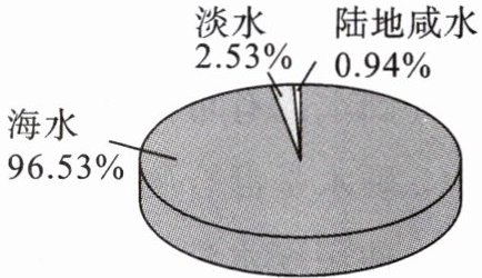 4. 如图所示是地球咸水、淡水的储量比,以下关于水的说法错误的是(