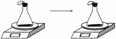 6. (教材第 111 页改编)某同学的设计如图所示,将铜粉平铺于锥形瓶的底部,把上端系有小气球的玻璃导管插入单孔橡胶塞,用橡胶塞塞紧锥形瓶口。将装置放在天平上称量,记录所称的质量 $ m_1 $。再将锥形瓶置于陶土网上,用酒精灯加热,观察实验现象。反应一段时间后停止加热,待装置冷却后再次称量,记录所称的质量 $ m_2 $。