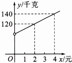 9.(银川市英才学校期中)某商贸公司以每千克40元的价格购进一种干果,计划以每千克60元的价格销售.为了让顾客得到更大的实惠,现决定降价销售,已知这种干果销售量y(千克)与每千克降价x(元)$(0<x<20)$之间满足一次函数关系,其图象如图所示: