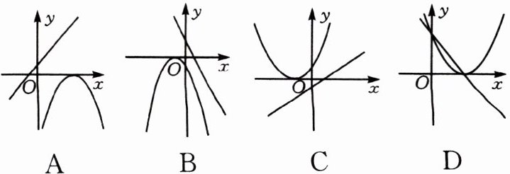 9. 在同一直角坐标系中,一次函数 $ y= ax+c $ 和二次函数 $ y= a(x+c)^2 $ 的图象大致为 (