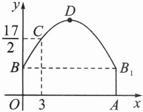 (1)求该抛物线的函数关系式,并计算出拱顶D到地面OA的距离;