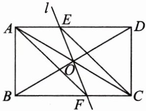 9. 如图,在矩形ABCD中,对角线AC与BD相交于点O,∠AOB= 60°,对角线AC所在的直线绕点O顺时针旋转角α(0°<α<120°),所得的直线l分别交AD,BC于点E,F.