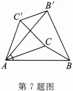 7. (益阳市中考)如图,已知△ABC中,∠CAB= 20°,∠ABC= 30°,将△ABC绕A点逆时针旋转50°得到△AB'C',以下结论:①BC= B'C';②AC//C'B';③C'B'⊥BB';④∠ABB'= ∠ACC',正确的有(