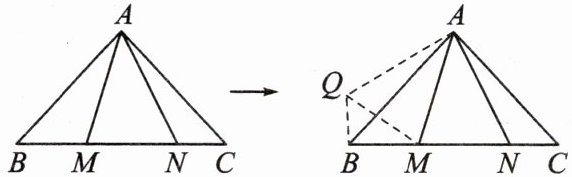 (2)条件:如图,在等腰Rt△ABC中,∠MAN= 45°.