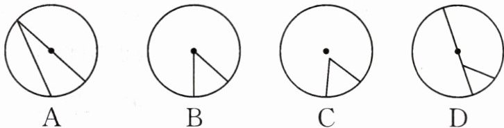 1. 下列图形中的锐角是圆心角的是 (