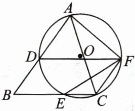 12.(银川市第十八中学月考)如图,在$\triangle ABC$中,$AC= BC$,D 是 AB 上一点,$\odot O$经过点A,C,D,交 BC 于点 E,过点 D 作$DF// BC$,交$\odot O$于点 F,连接 CF,AF.求证: