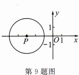 9.(石嘴山二中月考)如图,在平面直角坐标系xOy中,半径为2的$\odot P$的圆心P的坐标为$(-3,0)$,将$\odot P$沿x轴正方向平移,使$\odot P$与y轴相切,则平移的距离为(