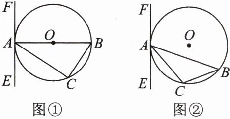 (2)如图②,如果AB是不过圆心O的弦,且$\angle CAE= \angle B$,那么EF是$\odot O$的切线吗?试证明你的判断.