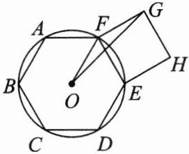 13. 如图,⊙O的半径为R,六边形ABCDEF是圆内接正六边形,四边形EFGH是正方形.