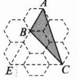 ∴正六边形的半径是 1,则 CE=4,由题意得中间间隔一个顶点的两个顶点之间的距离是$\sqrt{3}$,则△BCE 的边 EC 上的高是$\frac{3\sqrt{3}}{2}$,△ACE 的边 EC 上的高是$\frac{5\sqrt{3}}{2}$,则 S△ABC=S△AEC-S△BEC=$\frac{1}{2}\times4\times\left( \frac{5\sqrt{3}}{2}-\frac{3\sqrt{3}}{2} \right)$=$2\sqrt{3}$.