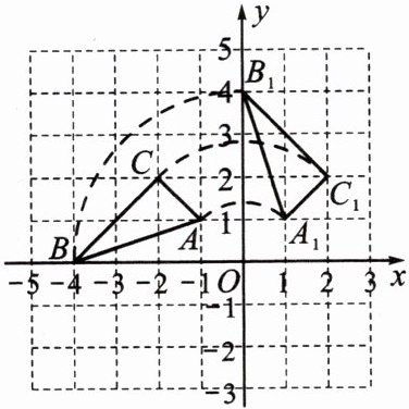 11.如图,在平面直角坐标系中,已知△ABC的三个顶点的坐标分别为A(-1,1),B(-4,0),C(-2,2).将△ABC绕原点O顺时针旋转90°后得到$△A_1B_1C_1.$