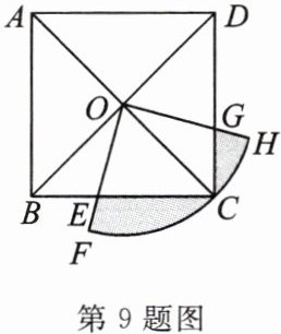 9.(黔西南州中考)如图,边长为4的正方形ABCD 的对角线交于点O,以OC为半径 的扇形的圆心角$\angle FOH= 90^{\circ}$,则图中阴影部分面积是