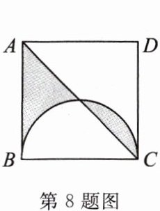 8.(铜仁市中考)如图,在边长为6 的正方形ABCD中,以BC为直径画半圆,则阴影部分的面积是(