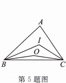 5. 如图,在△ABC中,∠BOC= 140°,I是内心,O是外心,则∠BIC= ______.