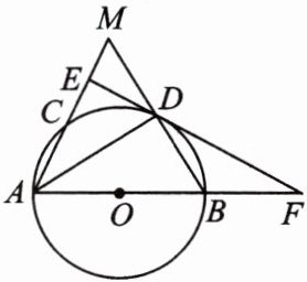 14. (宁夏自治区中考)如图,以线段AB为直径作⊙O,交射线AC于点C,AD平分∠CAB交⊙O于点D,过点D作直线DE⊥AC于点E,交AB的延长线于点F,连接BD并延长交AC于点M.