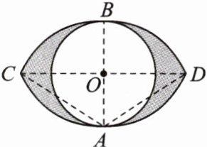 13. (宁夏自治区中考)如图,已知⊙O的半径为1,AB是直径,分别以点A、B为圆心,以AB的长为半径画弧,两弧相交于C、D两点,则图中阴影部分的面积是(
