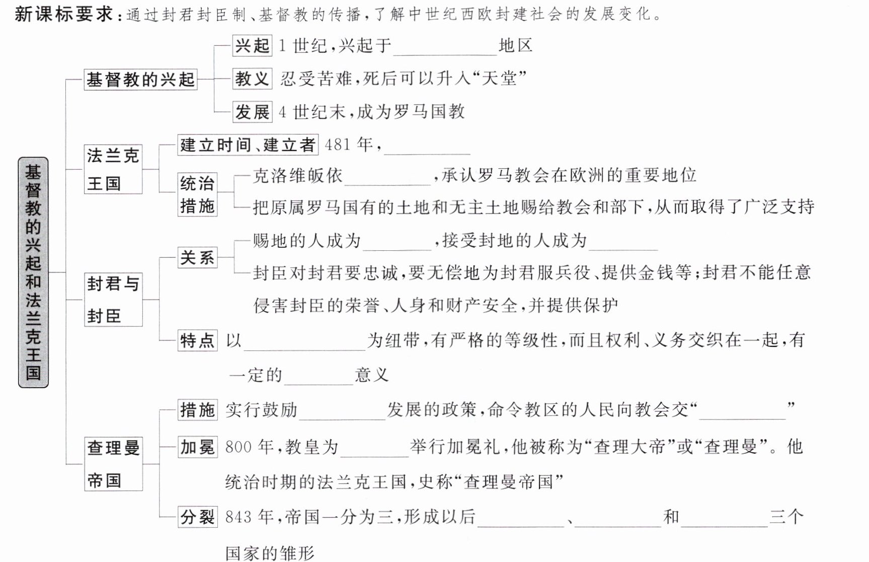 新课标要求:通过封君封臣制、基督教的传播,了解中世纪西欧封建社会的发展变化。
