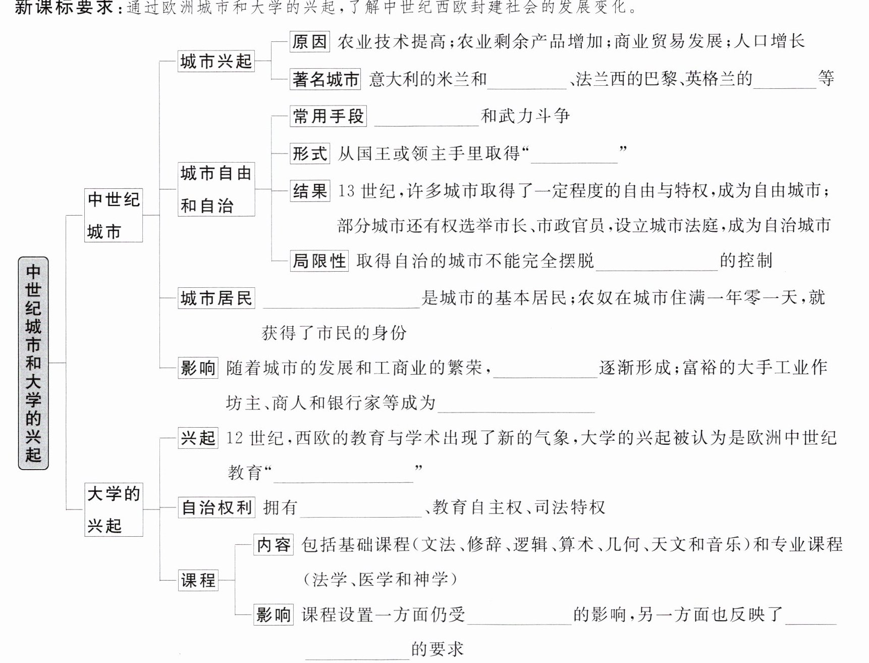 新课标要求:通过欧洲城市和大学的兴起,了解中世纪西欧封建社会的发展变化。