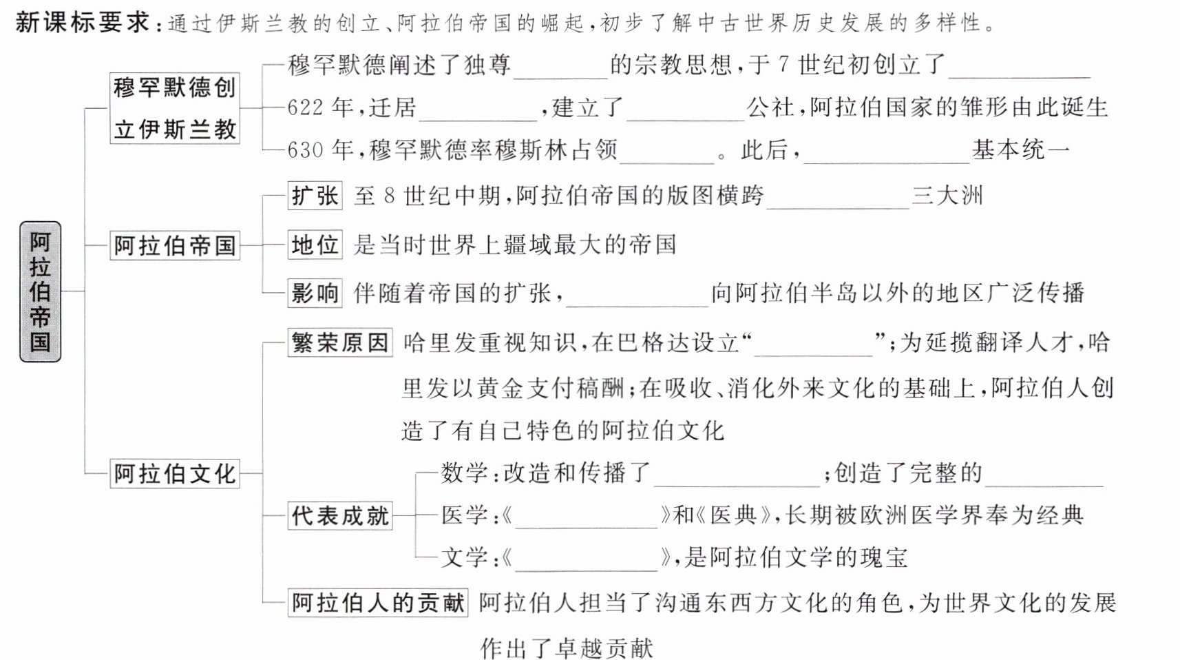 新课标要求:通过伊斯兰教的创立、阿拉伯帝国的崛起,初步了解中古世界历史发展的多样性。