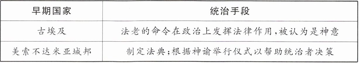 6.(2024·广东)下表为世界古代史上两个早期国家的统治手段简况。据此可知,两者的共性是( )