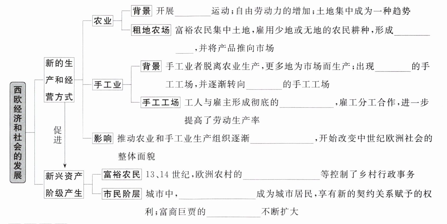 ├─影响 推动农业和手工业生产组织逐渐______,开始改变中世纪欧洲社会的整体面貌