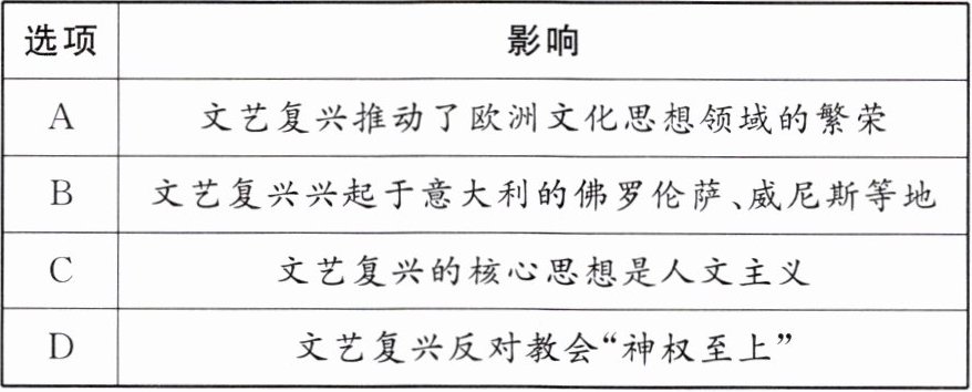 3.(2025·湖北一模)小历同学在学习《文艺复兴》这一课后,绘制了一个表格。关于文艺复兴的影响,表格中说法正确的一项是( )
