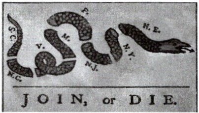 2. 如图是本杰明·富兰克林绘制于1754年的一幅政治漫画。富兰克林绘制此漫画的主要意图是( )
