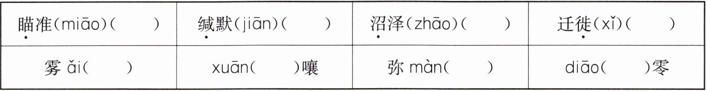【点拨】“瞄准”的“瞄”应读 miáo,“沼泽”的“沼”应读 zhǎo。