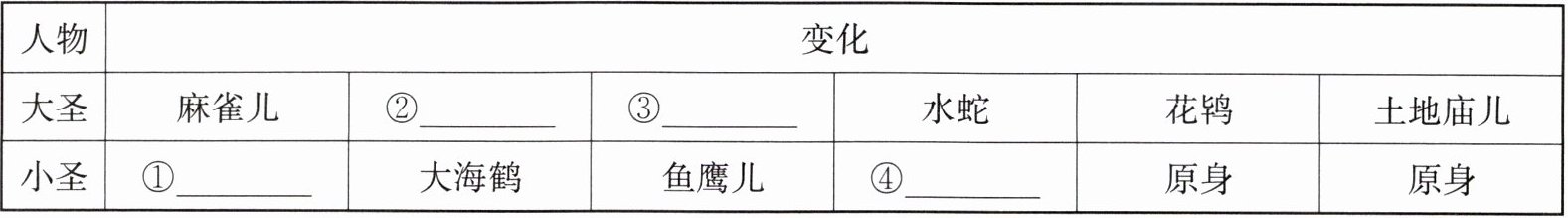 4. 【梳理情节】阅读课文,梳理大圣和小圣的变化斗法过程,补全下表。(4分)