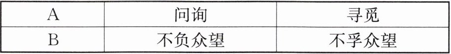 (1)寻觅 不负众望(每空1分) 【点拨】"问询"的意思是询问、打听。"寻觅"的意思是寻找。根据语境可知,A处应选"寻觅"。"不负众望"的意思是不辜负大家的期望。"不孚众望"的意思是不能使大家信服,未符合大家的期望。语境是二郎神没有辜负大家的期望,所以 B处应选"不负众望"。