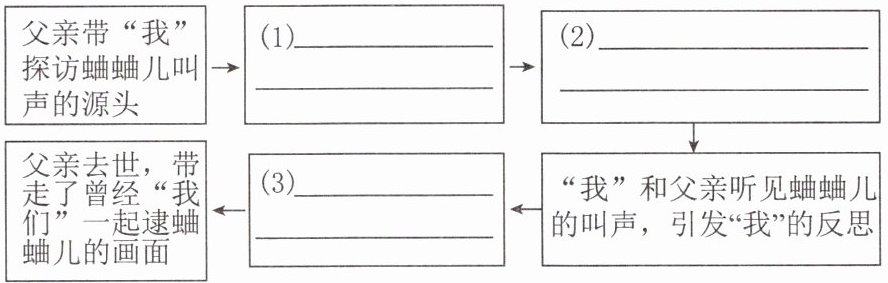 1.【思维导图】请你根据文章内容,梳理与“我”和父亲逮蛐蛐儿相关的几件事,将下面的思维导图补充完整。(3 分)