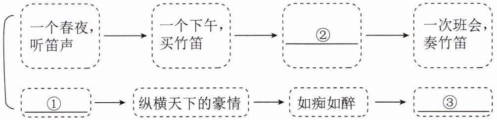 一个春夜,听笛声→一个下午,买竹笛→②______→一次班会,奏竹笛