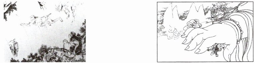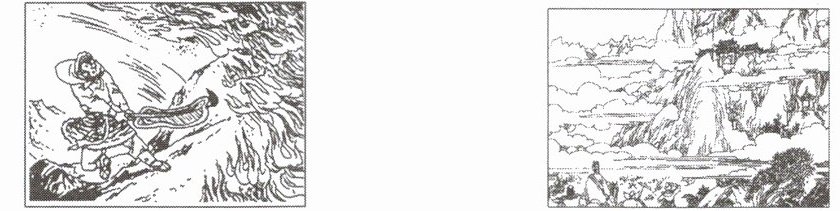 1. 回首孙悟空的成长之路,总免不了翻越“高山”。请你写出每幅图体现的山并任选一座“山”,联系《西游记》中的相关情节,围绕提示的关键词,说说对你的启发。