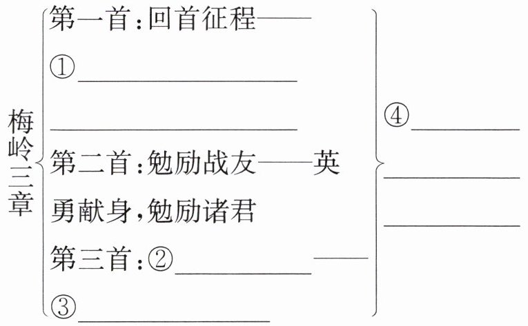 梅岭三章{第一首:回首征程——①______ ______ 第二首:勉励战友——英勇献身,勉励诸君 第三首:②______——③______}④______ ______