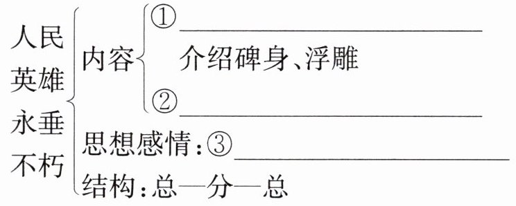 (4)C(2分)【点拨】歌功颂德:歌颂功绩和恩德(多用于贬义)。人死留名:人死后要留下美名,是说人活一世,要有所作为。永垂不朽:(姓名、事迹、精神等)永远流传,不磨灭。海枯石烂:比喻坚定的意志永远不变(多用于誓言)。这里说的是革命先烈的精神永远流传,应用"永垂不朽"。