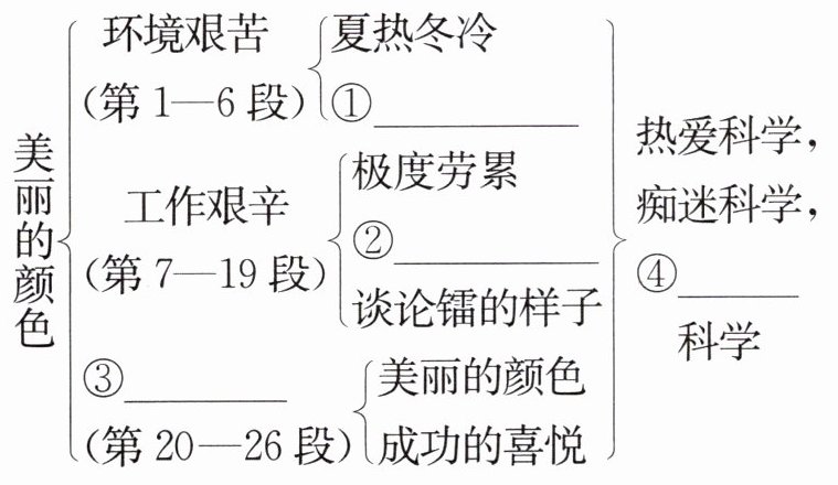 ①苦中有乐 ②离析困难 ③提取出镭 ④献身