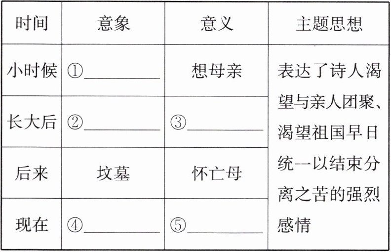 |想母亲|表达了诗人渴望与亲人团聚、渴望祖国早日统一以结束分离之苦的强烈感情||长大后|②