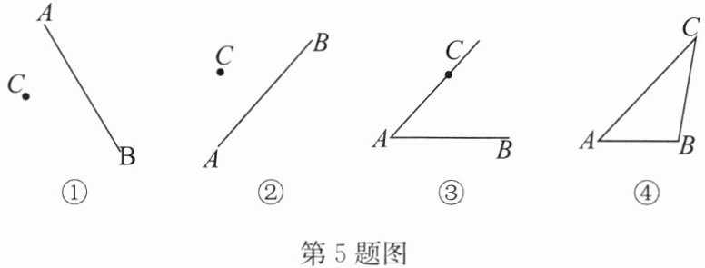 5. 如图,在下列各图中,用三角尺分别过点C画AB的垂线.