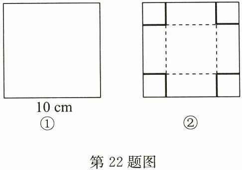 cm的小正方形,拼成一个大正方形作为长方体的一个底面,余下部分按虚线折叠成一个无盖的长方体盒子,最后把两部分拼在一起,组成一个完整的长方体,它的表面积等于原正方形的面积;(2)若该正方形是一个圆柱的侧面展开图,求该圆柱的体积。(结果保留$\pi$)