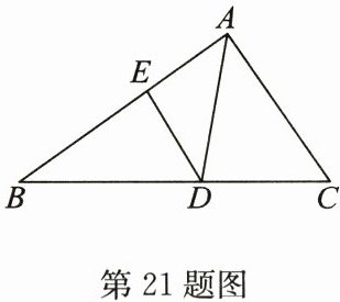 21. (10分)如图,在△ABC中,AD是角平分线,E为边AB上一点,连接DE,∠EAD= ∠EDA.试说明:DE//AC.