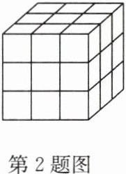 2. 如图,将一个正方体木块涂成红色,然后把它的棱三等分,再沿等分线把正方体切开,可以得到27个小正方体,其中三面涂色的小正方体有8个,两面涂色的小正方体有12个,一面涂色的小正方体有6个,各面都没有涂色的小正方体有1个。现将这个正方体的棱n等分,如果得到各面都没有涂色的小正方体216个,那么n的值为______