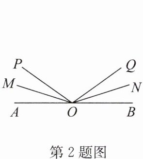 2. 如图,点$A,O,B$在一条直线上,射线$OP从OA$出发,绕点$O$顺时针旋转,同时射线$OQ也以相同的速度从OB$出发,绕点$O$逆时针旋转,当$OP,OQ分别到达OB,OA$上时,运动停止.已知$OM,ON分别平分∠AOP和∠BOQ$,设$∠MON= x^{\circ },∠POQ= y^{\circ }$,则$x与y$之间的数量关系为____.