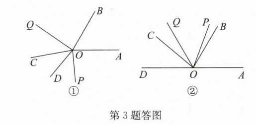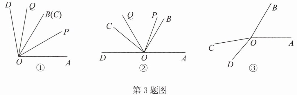 3. 已知$∠AOB和∠COD$均为锐角,$∠AOB>∠COD,OP平分∠AOC,OQ平分∠BOD$,将$∠COD绕点O$逆时针旋转,使$∠BOC= α(0^{\circ }≤α<180^{\circ }).$
