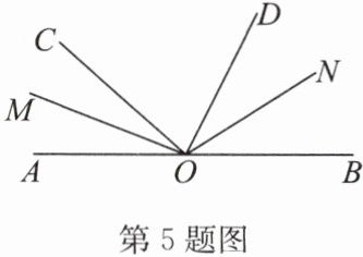 5. 如图, $ \angle AOB $ 是平角, $ OM $, $ ON $ 分别是 $ \angle AOC $, $ \angle BOD $ 的平分线.