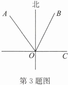 3. 如图, 射线 $ OA $ 表示北偏西 $ 36 ^ { \circ } $ 方向, $ OB $ 平分 $ \angle AOC $, 则 $ \angle BOC = $