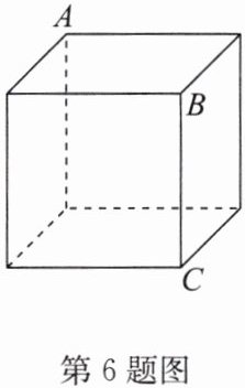 6. 如图,一只蚂蚁位于一个正方体盒子的顶点A处,它要爬到顶点B处,应沿哪条线爬行,才能使路程最短? 如果由顶点A直接爬到顶点C,又应沿哪条线爬行,才能使路程最短呢? 请画出图形并加以描述.(如果方案不是唯一的,请给出所有方案)