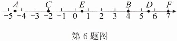 解:点A表示的数是-4.5;点B表示的数是4;点C表示的数是-2;点D表示的数是5.5;点E表示的数是0.5;点F表示的数是7.